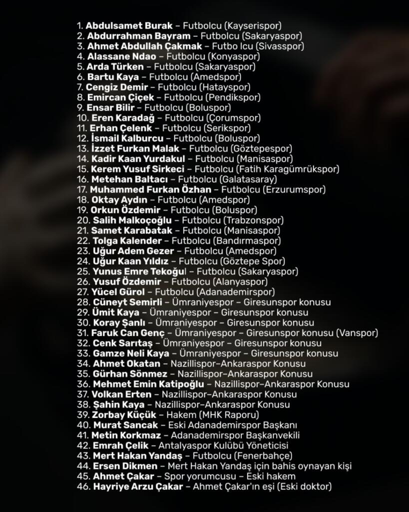 - Kulüp yönetici ve eski başkanların yanı sıra bazı alt liglere kadar uzanan isimlerin de soruşturma listesinde olduğu ifade ediliyor.