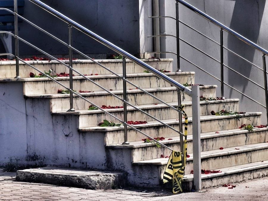 Kahramanmaraş'ta öğrenciler, vefat eden arkadaşları için okulun merdivenlerine gül bıraktı.