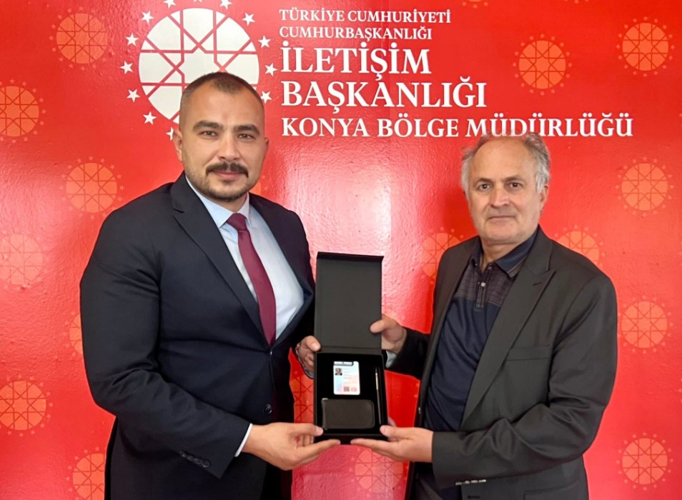 Bugün Cumhurbaşkanlığı İletişim Başkanlığı Konya Bölge Müdürlüğü’nde düzenlenen bir organizasyon öncesi, Bölge Müdürü Oğuz Tunç tarafından kendisine sürpriz bir şekilde basın kartı takdim edildi.