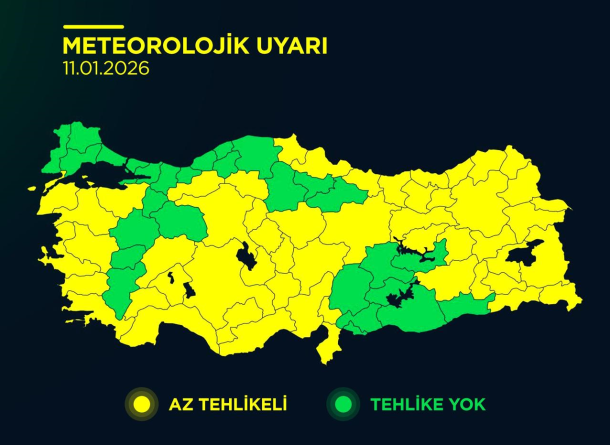 Meteoroloji Genel Müdürlüğü (MGM), Türkiye genelinde etkili olacak olumsuz hava koşulları nedeniyle 68 il için sarı kodlu meteorolojik uyarı yayımladı. Bu uyarı, vatandaşların fırtına, kuvvetli yağış, kar ve çığ gibi risklere karşı dikkatli ve tedbirli olması gerektiğini belirtiyor.
