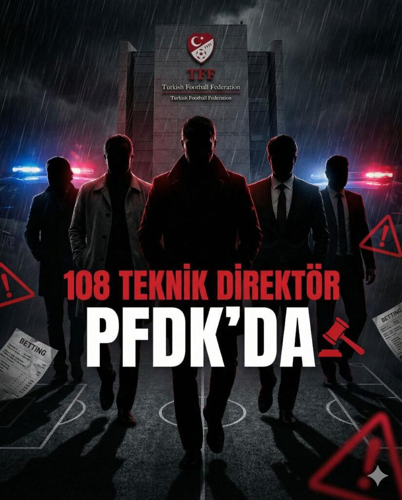 Türkiye Futbol Federasyonu (TFF), bahis faaliyetleriyle bağlantılı oldukları gerekçesiyle 108 teknik direktör ile 104 futbol menajerinin Profesyonel Futbol Disiplin Kurulu’na (PFDK) sevk edildiğini açıkladı.