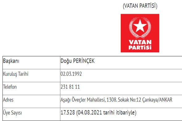 2017 başında 22 bin 647 üyesi olan Vatan Partisi’nde üye kaybı devam ediyor. VP’nin güncel üye sayısı altı ayda 19.281’den 17.528’e düştü